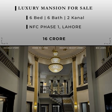 Are you looking for a grand, one of a kind luxury mansion in one of Lahore's most prestigious societies? This breathtaking 2 Kanal brand new designer mansion on the 60ft main road of NFC Phase 1 is now available for sale at PKR 16 Crore β a rare opportunity that does not come around often.